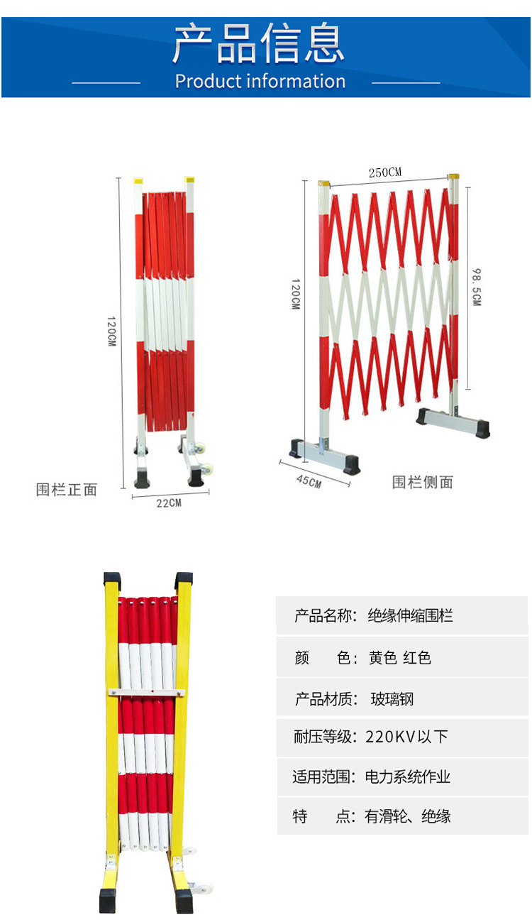 片狀玻璃鋼圍欄,絕緣伸縮隔離欄,可移動伸縮護欄